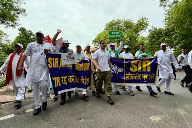 আজ, ১১ আগস্ট ২০২৫, দিল্লিতে স্পেশাল ইনটেনসিভ রিভিশন (SIR) প্রক্রিয়া এবং ২০২৪ সালের লোকসভা নির্বাচনে কথিত “ভোট চুরি” (vote chori) অভিযোগকে কেন্দ্র করে ইন্ডিয়া ব্লকের বিরোধী দলগুলোর প্রতিবাদ মিছিল ঘিরে তীব্র উত্তেজনা দেখা দিয়েছে।