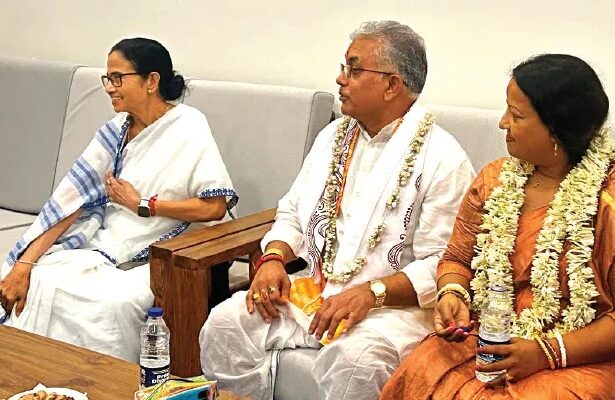 দীঘার জগন্নাথ মন্দিরে বুধবার বিকেলে এক অভূতপূর্ব দৃশ্য। বিজেপি নেতা দিলীপ ঘোষ সস্ত্রীক পুজো দিয়ে বেরিয়ে এসে বললেন, “মুখ্যমন্ত্রীকে দিয়ে ভগবান একটা ভালো কাজ করিয়েছেন।” তাঁর এই মন্তব্যে সায় দিলেন রাজ্যের বিদ্যুৎমন্ত্রী অরূপ বিশ্বাস। কিন্তু এই ঘটনায় বঙ্গ রাজনীতিতে তুফান উঠেছে, আর গেরুয়া শিবিরে ক্ষোভের আগুন জ্বলছে।